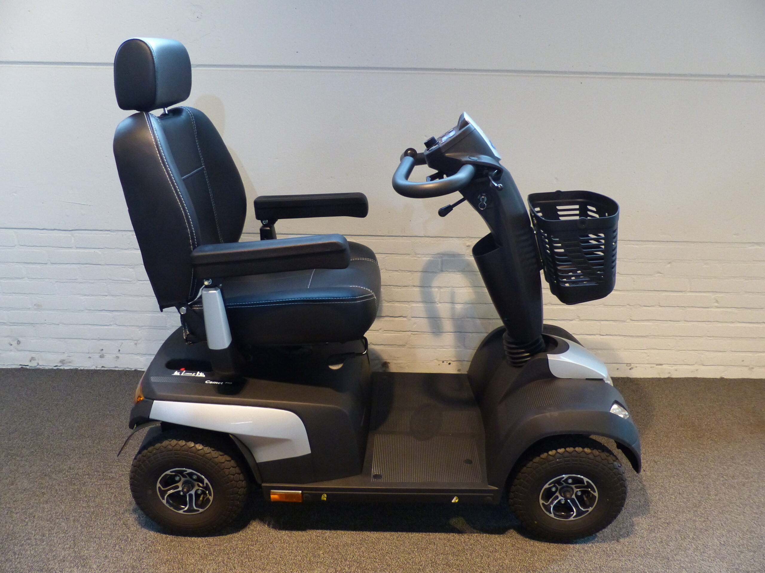 Deze Comet Pro 4, hebben wij ingekocht van de 1e eigenaar, is in 2022 gaan rijden en heeft maar 45km gereden. Dus zo goed als niet gebruikt en verkeerd in absolute nieuwstaat. De Comet Pro 4 is een complete en comfortabele scootmobiel. Voorzien van km-teller, snelheidsmeter, kleurendisplay, mand, verlichting, verstelbare stoel en stuurkolom etc.. De Comet Pro 4 is uitzonderlijk geschikt voor de dagelijkse boodschappen, familiebezoek of zomaar er even tussenuit. Door de automatische snelheidsbegrenzing in de bochten super veilig. De accu’s zijn door ons getest en verkeren nog in topconditie. Wordt geleverd inclusief onderhoudsbeurt, 3 maanden garantie en 24V lader.