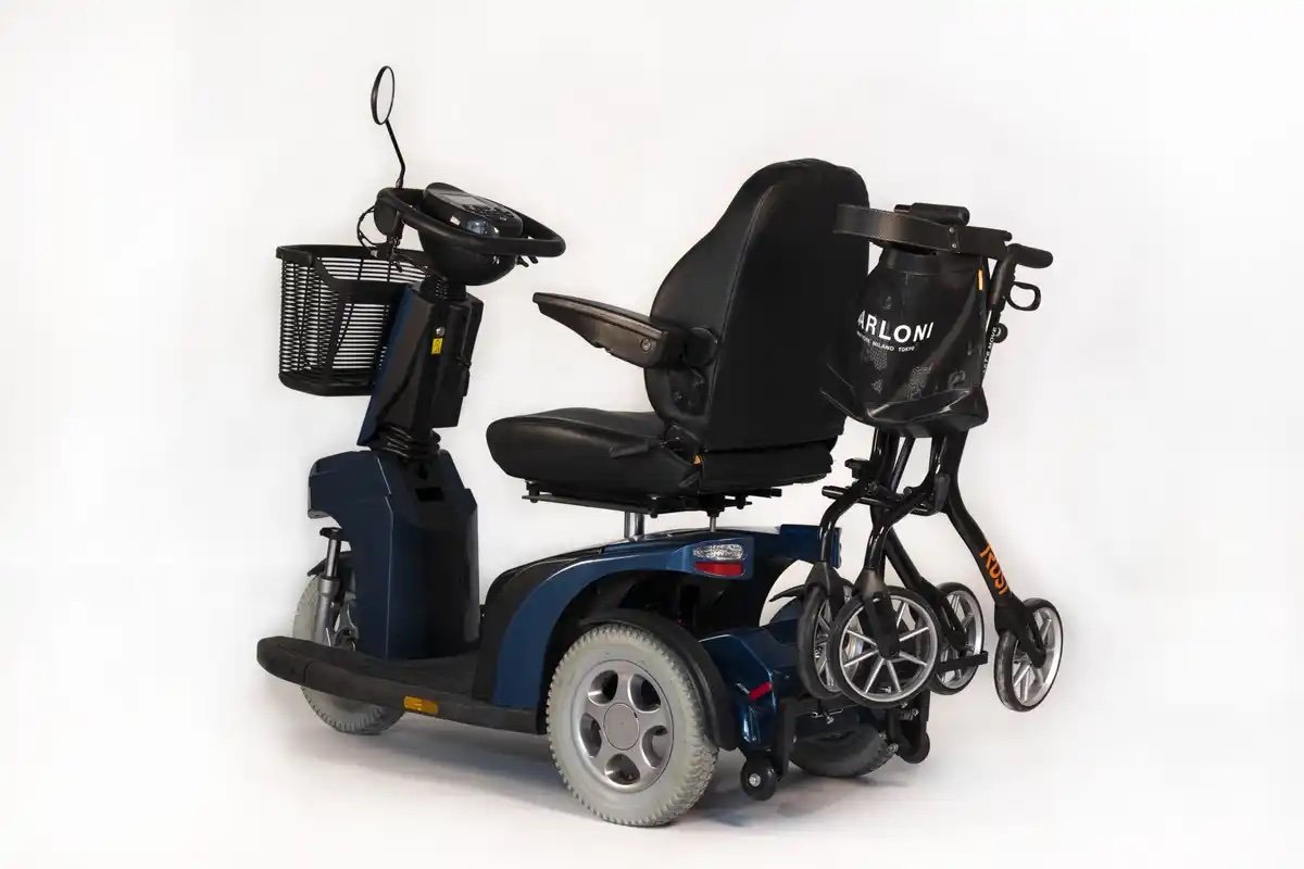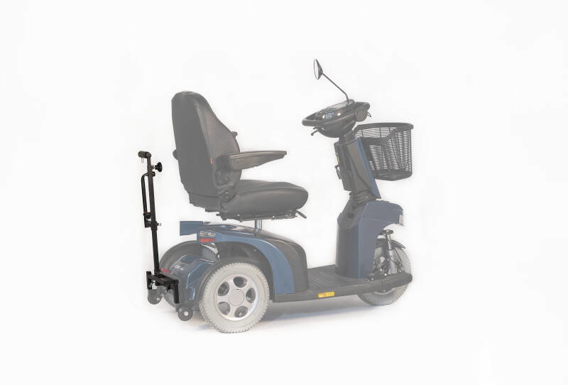 Na montage dient de rollator ongeveer 50 cm hoog getilt te worden om het in de rollatorhouder te plaatsen. Het achterwiel van de rollator hoort gelijk te komen met de onderkant van de scootmobiel om mobiliteit niet te beperken. De hoogte van de houder is gemakkelijk verstelbaar.