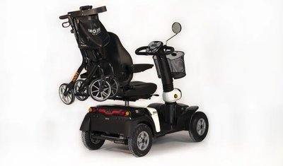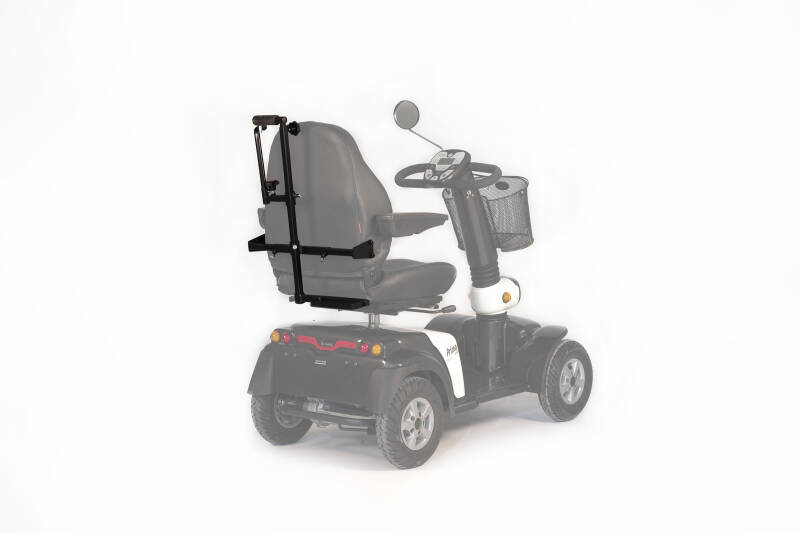 De Rollinova rollatorhouder is een montagesysteem voor achterop de scootmobiel. De houder zorgt ervoor dat je eenvoudig jouw rollator kunt meenemen op de scootmobiel. De houder kan bevestigd worden de zitting of aan de bumper van de scootmobiel. De plaatsing van de rollatorhouder is erg eenvoudig bij de zittingmontage. De houder wordt in de aanwezige koker geplaatst en vast gezet. Met deze manier van monteren beweegt de houder mee met het draaien en verstellen van de zitting. De houder beweegt niet mee bij het verstellen van de rugleuning.